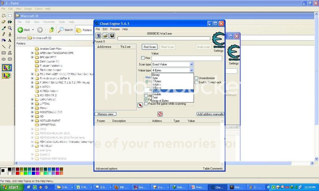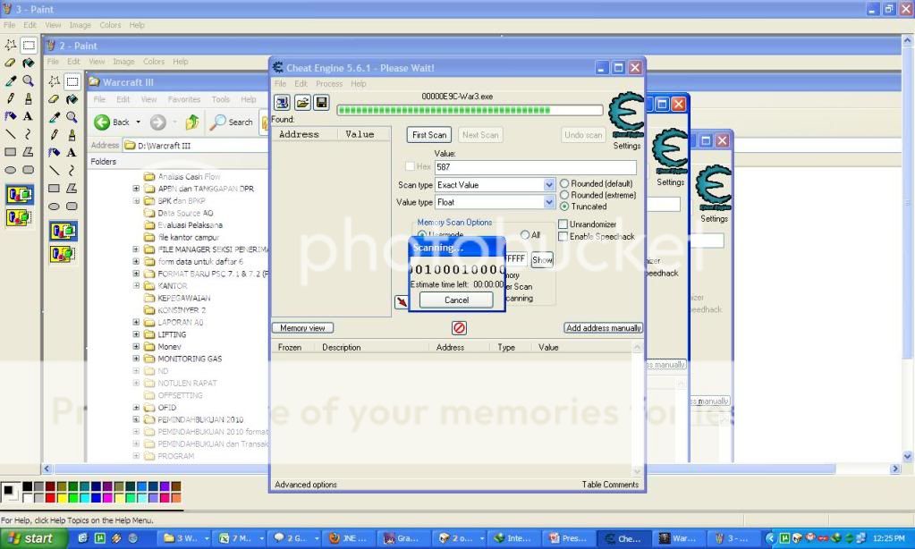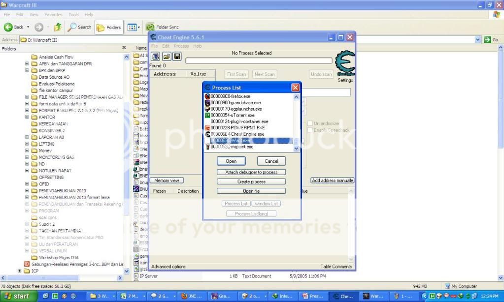 2) kita alt+tab dulu... buka aplikasi Cheat Engine (CE)... open process... lalu targetnya ke aplikasi warcraft (war3.exe)